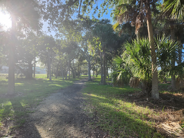 I did get a decent amount of exercise in today, which was good because I've been low lately. I took myself over to the NASA gym around 3:00 today, only to find out it was closed for Veteran's Day. That explained why the parking lot was completely empty (most of NASA was probably off for the day). I thought about going back and wandering around the park, but I get bored of that so quickly and didn't want to be around guests today; so I decided it was just cool enough (even though it was hot) to check out the path that goes in front of the O&A.